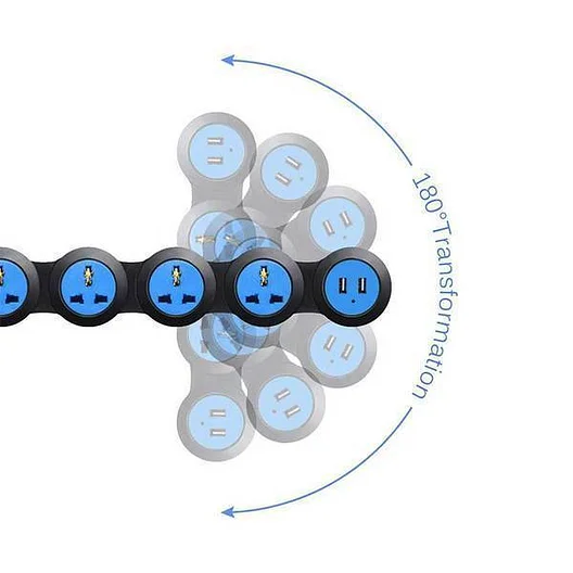 The ultra flexible shape allows you to adjust each outlet pods so that large power bricks don't hog space. Perfect for home, office, or professional workstation use.