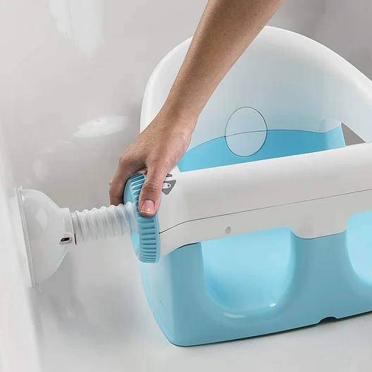 The Baby Bath Seat by Summer Infant is easily installed into any standard bathtub. Just extend the suction cup arms out and press them against the side of the tub, then turn the dial on each arm to lock it in place. Extend the arms evenly until the suction cups contact the wall of the tub, and the red indicator lines disappear.
