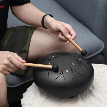 This drum can be played with hands or with sticks. Place it on your lap, or on some soft surface to keep sound hole at the bottom open. The hit must be sharp, but not too strong. After a short contact with the surface of the instrument finger should ¡°bounce up¡± like a tennis ball. The shorter is the time of contact with the surface ¨C the longer the sound becomes and the overtones get richer. For beginners, the best way to start is to use a forefinger. Hit the surface of the drum with your fingertips, the place which normally used for the fingerprint. After a little practice, the notes played with fingers will become as loud and clear as if you are using a stick.How To Take Care of Steel Tongue Drum.