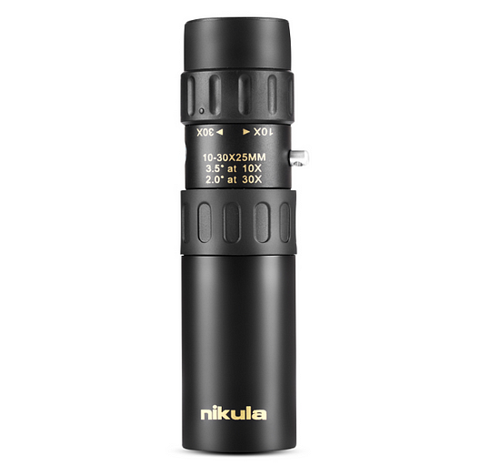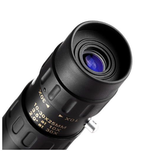 model: 10-30x25 magnification: 10x-30 times eyepiece diameter: 13mm Lens diameter: 25mm Category prism: bak4 coating: multilayer broadband green film size: 127mm × 32mm X 32mm FOV: 10 times: 3.5 ° ~ 30 times: 2.0 ° Focus mode: stretch or focus (two ways) Anti-skid technology: Support Waterproof Technology: Not supported folding technology: support Zoom feature: Support material: Aluminum black color gross weight: 170g Weight: 122g environmental parameters: (telescope best storage conditions) humidity: 65% or less Tripod interface: Support goal: travel trips, outdoor sports, with the look with the use. Section near the focal length of up to 0.5 m, near development view is quite an advantage. Compact, lightweight, and can carry anytime.