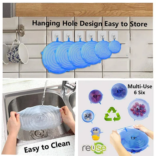 ❤【Reusable and Durable】: The extra-thick silicone stretch lids is durable and reusable without tearing or warping. Reusable silicone lids can eliminate the need to repeatedly buy expensive plastic wrap, economical and Environmental protection.